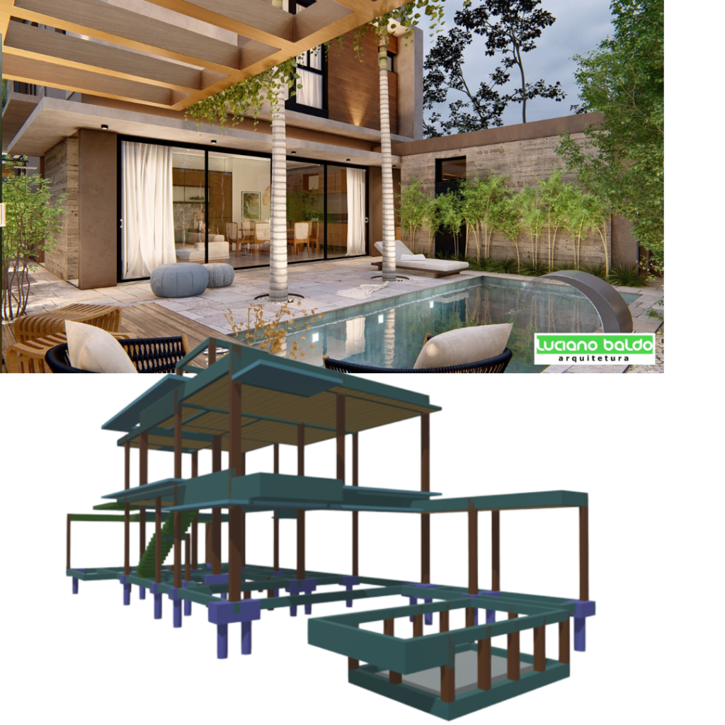 O projeto arquitetônico conta com grandes vãos e áreas integradas.. a fachada foi dimensionada em estrutura metálica, uma vez que será executado posteriormente.. todos os detalhes foram feitos de acordo com a arquitetura, seguindo as alturas dos perfis metálicos e atendendo as deformações limites normativas.