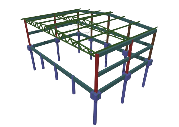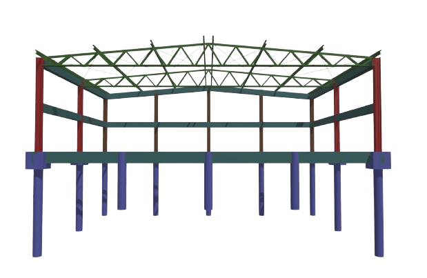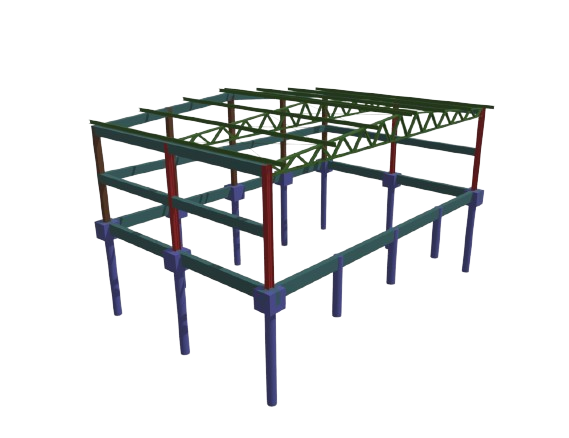 O projeto estrutural conta com uma cobertura metálica com 12.5 metros de vão livre, e pilares no perfil W que às apoiam. O restante do fechamento será feito em concreto armado (pilares e vigas) e blocos de concreto (vedação).